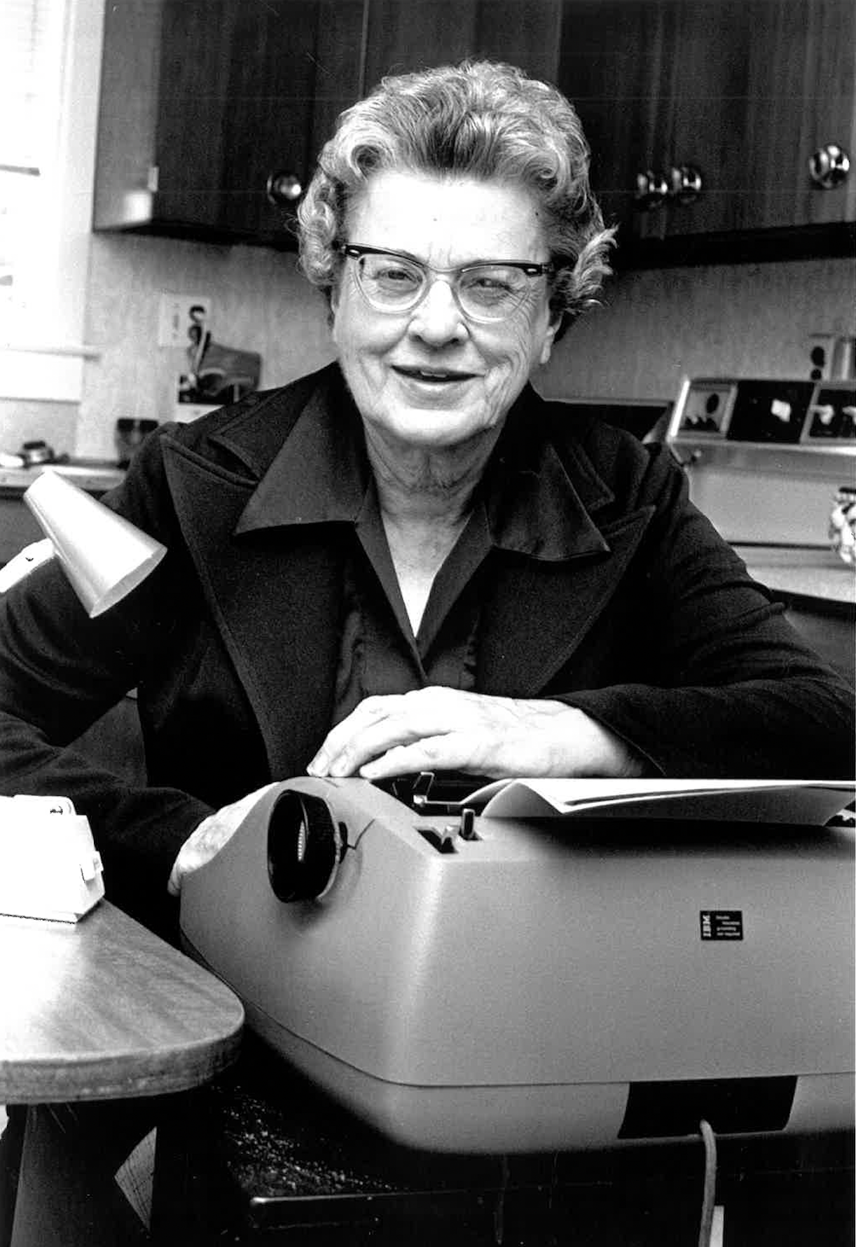 Miss Simmons at her typewriter in 1981.